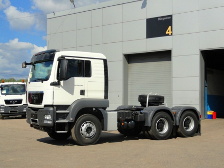 Седельный тягач TGS 33.440/33.480/33.540 6X4 BBS-WW. Двигатель - 440/480/540 л.с., Евро-4, Common-Rail, Кабина XL или XLX – кабина со средневысокой крышей, Колёсная база 3600 mm, Дополнительный топливный фильтр SEPAR, обогреваемый, с водоотделителем, Обогрев топливного фильтра, Управления двигателем EDC, Моторный тормоз (EVB), Электрофакельное устройство облегчения холодного пуска, Круиз-контроль, Топливный бак алюминиевый, 760 л справа, Кондиционер бесфреоновый, с автоматической регулировкой температуры.